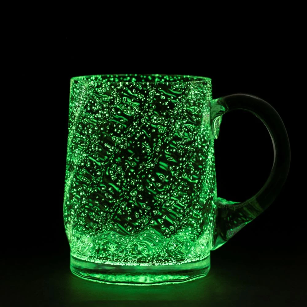 Originální skleněný, svítící půllitr na pivo s fluorescenčním pigmentem