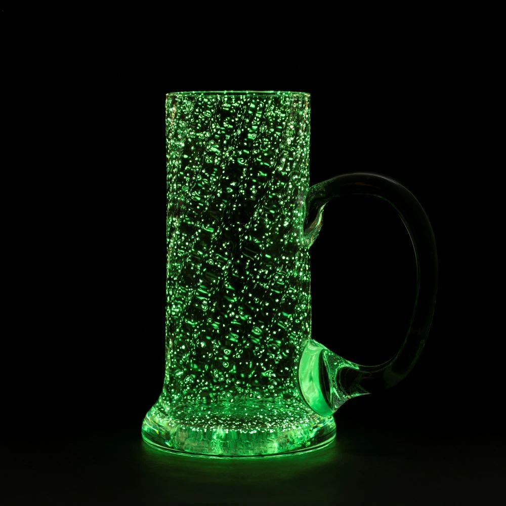 Originální skleněný, svítící půllitr na pivo s fluorescenčním pigmentem.
