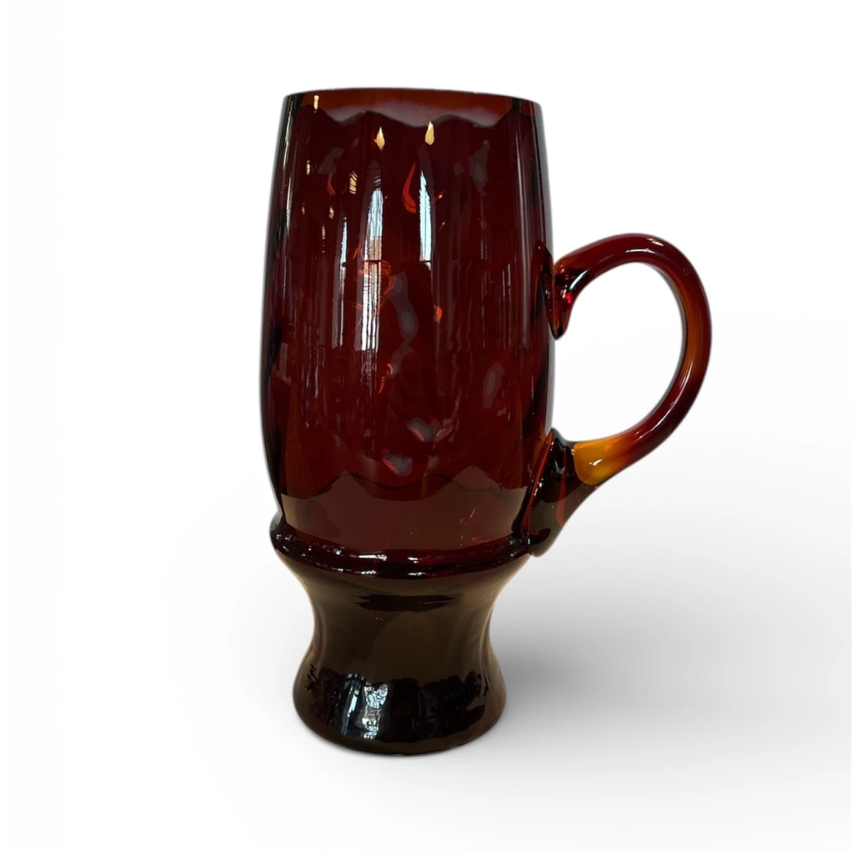 Originální skleněný tuplák, foukaný do dřevěné formy z hutního skla, za tepla zapalovaným hrdlem.