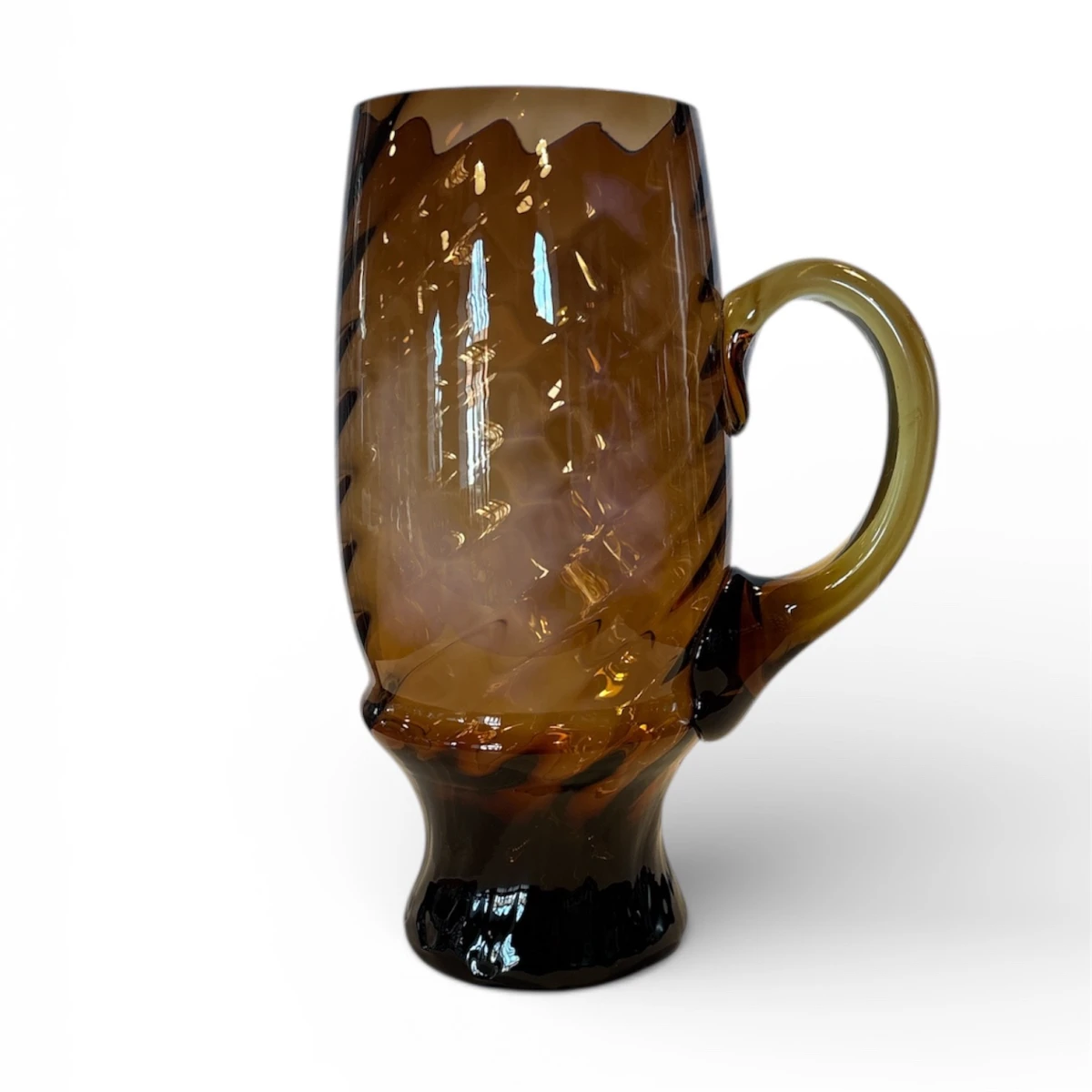 Originální skleněný tuplák, foukaný do dřevěné formy z hutního skla, za tepla zapalovaným hrdlem.